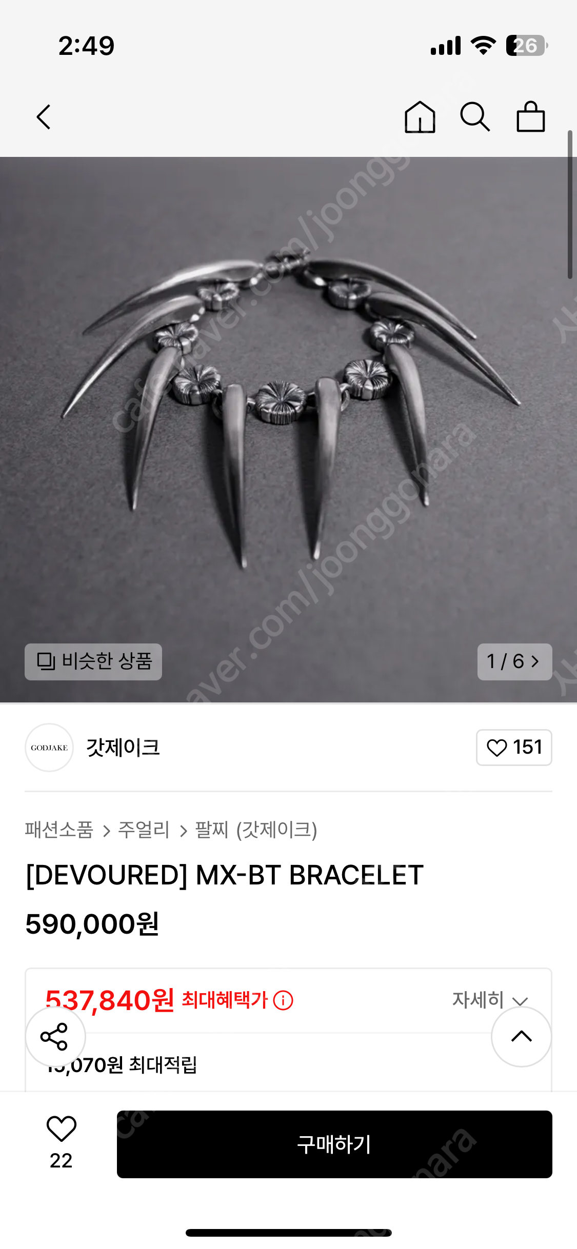 갓제이크 MX-BT BRACELET 송곳니 은팔찌